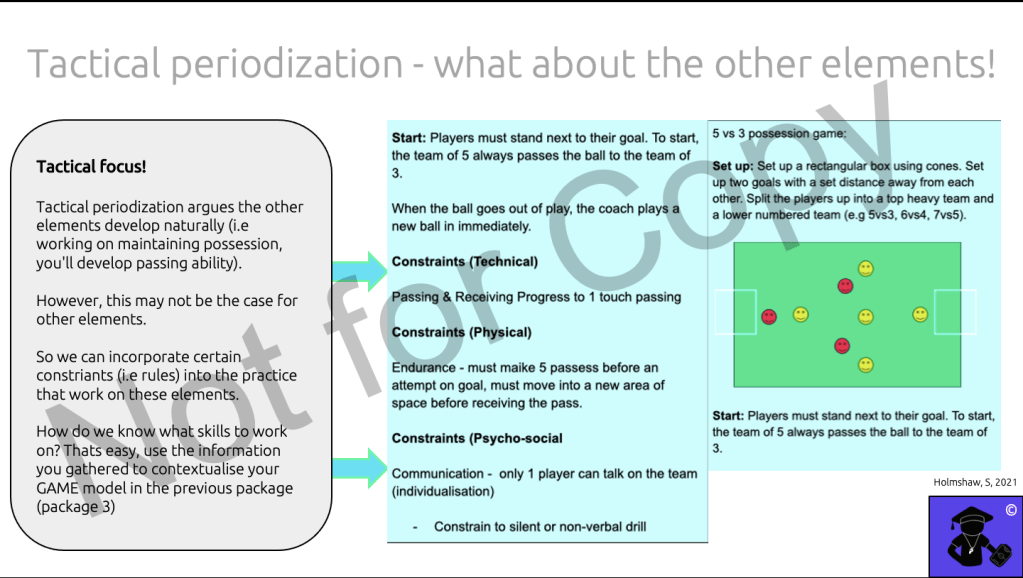If you are a fan of my blogs, you will see that this is getting into the topic of ‘tactical periodisation’, which I won’t go on to discuss here, but if you are interested to learn more then go and check out the blog here!