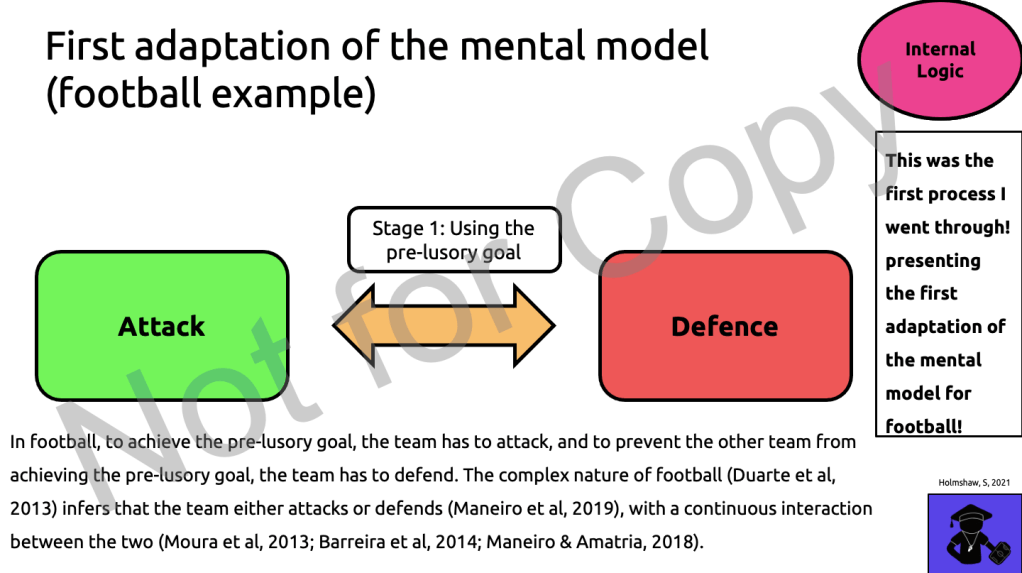Remember, players should be seen as problem solvers. They are confronted with various macro or common tactical performance problems in the game, such as ‘how do i counter attack’ (represented in a mental model of football, or there conception/representation of their mental model of what the game looks like to them) as-well as various micro performance problems that arise in that game and that game alone.