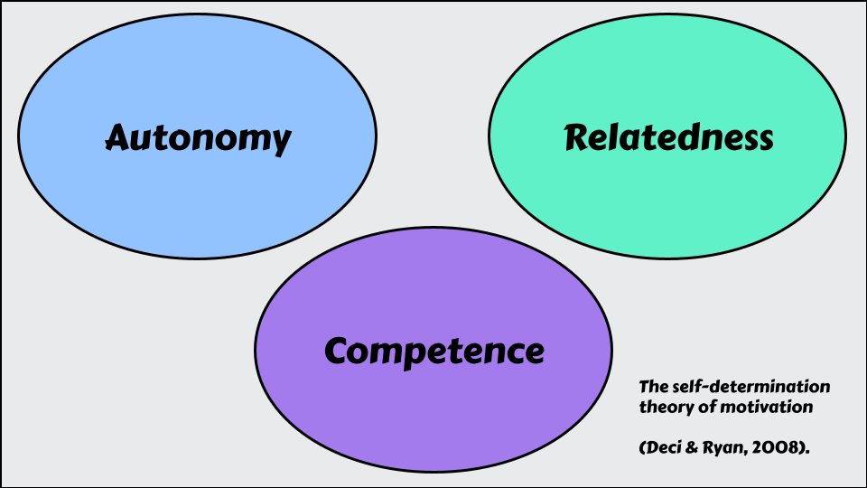 They conceptualise motivation into 3 parts – that is Autonomy, Competence and Relatedness.